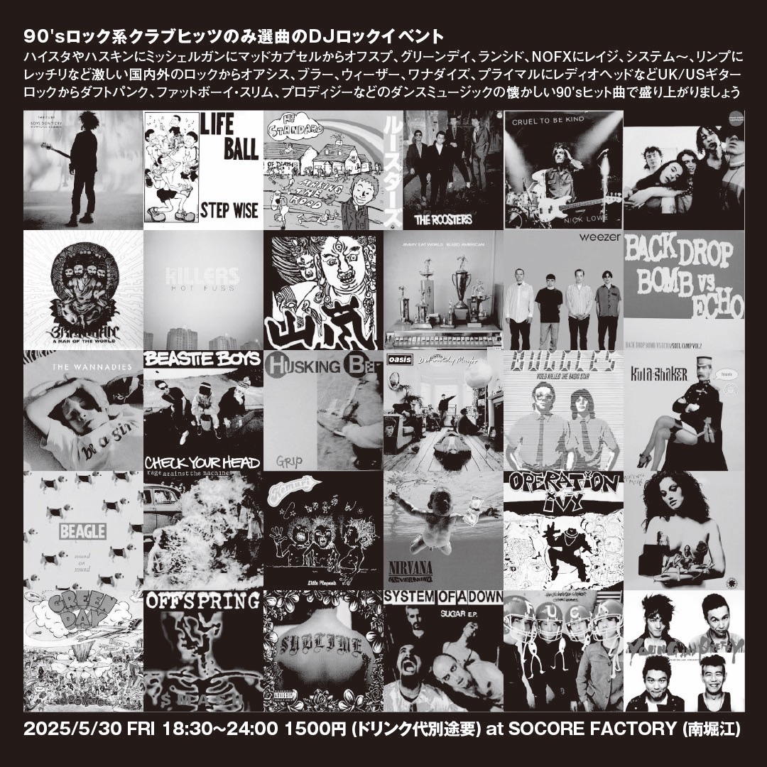 90’sロック系クラブヒッツのみ選曲のDJロックイベント | DJ party with only 90’s rock club hits!!