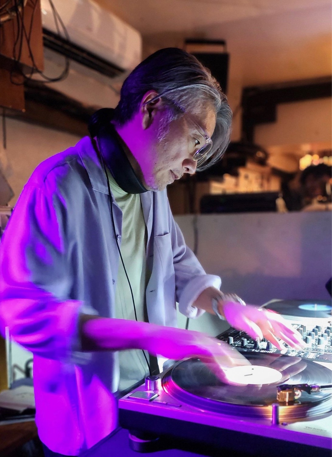 DJ(Bass and Vintage music of Latin – Middle East – Asia, + Psychedelic), 超メロウで甘い“Sweet Mellow Sweet” 夫婦企画のハイブリッドLatin Party“¡Báilalo OSAKA!”など不定期イベントを主催。驚きと笑いを信条にDJ Boothに立っている。