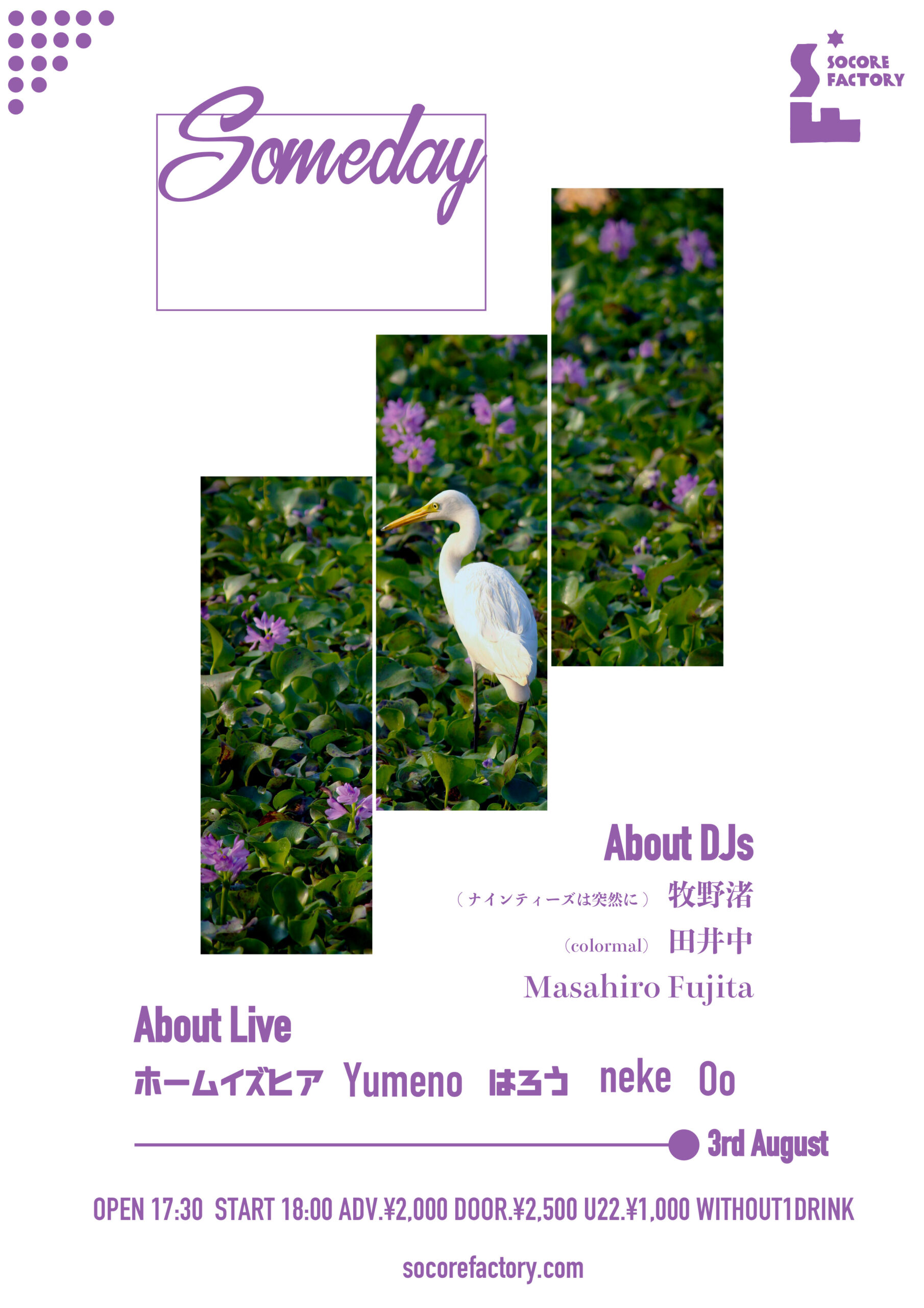インディロック感からシューゲイズ、ドリームポップにオルタナティブまで幅広いジャンルを1つの嗅覚「点」で繋いでいくというのをコンセプトに自分の嗅覚に沿った内容で仕上げるイベントが「Someday」