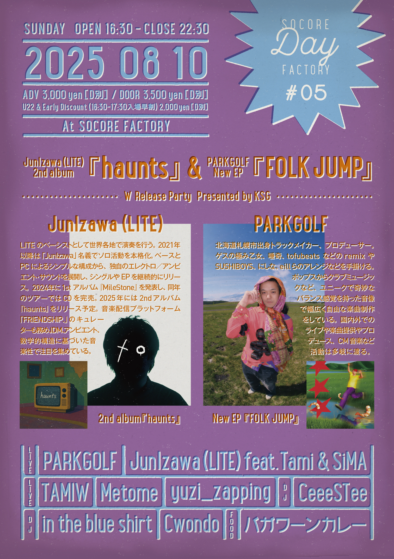 Socore Day Factory JunIzawa(LITE) 2nd album & PARKGOLF New EP W Release PartyPresented by KSG