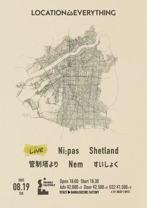 Open:18:00 / Start:18:30 / Adv:¥2,000 (D別) / Door:¥2,500 (D別)