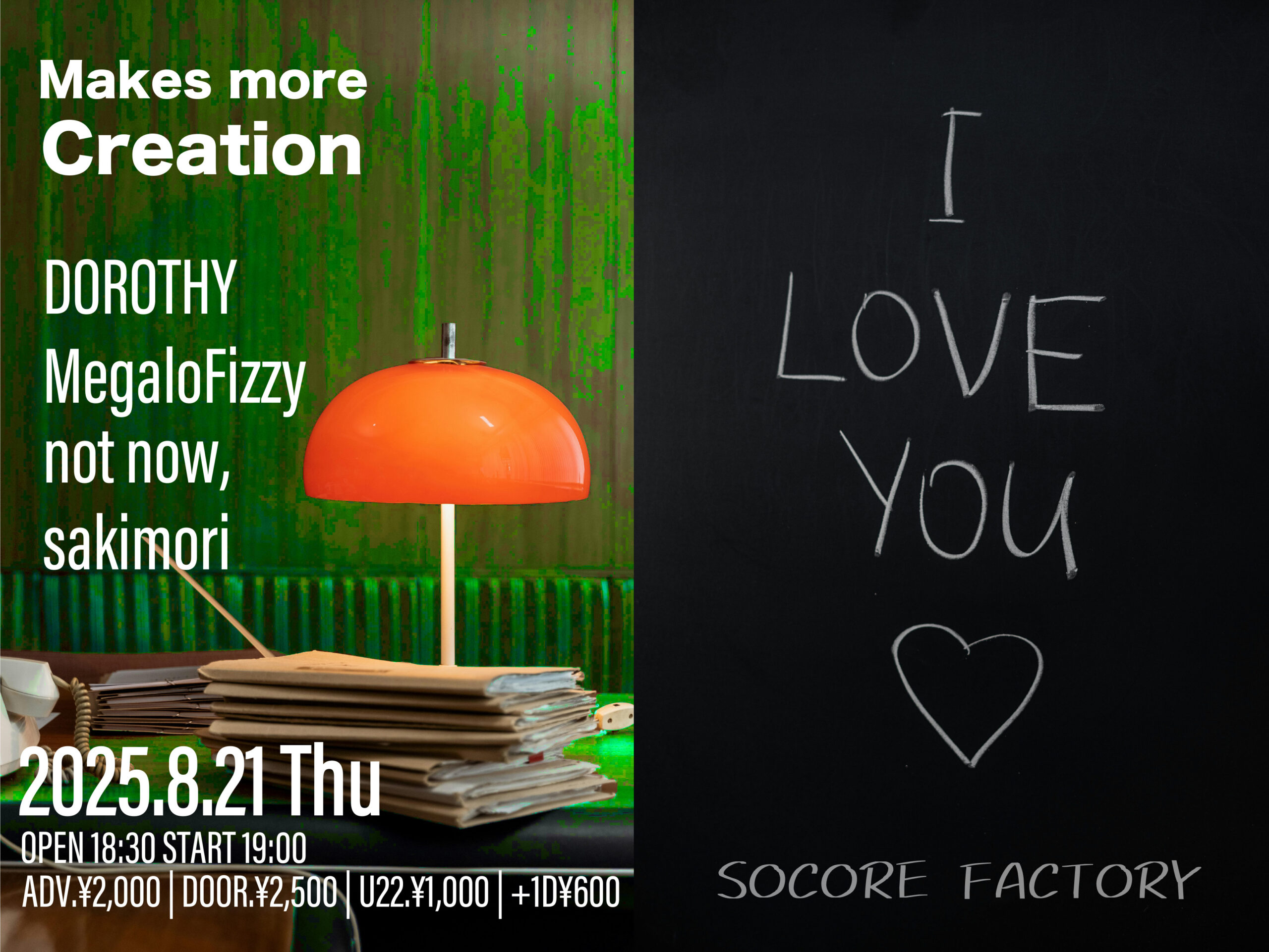 SOCORE FACTORYに出演するのが初めてというバンドさんも多い感じで、新たな出会いの中に少しでも想像が出来る形がこの4組で出来たら良いなと願望を持ちつつ、お客様も楽しんで頂けますと幸いに思います。