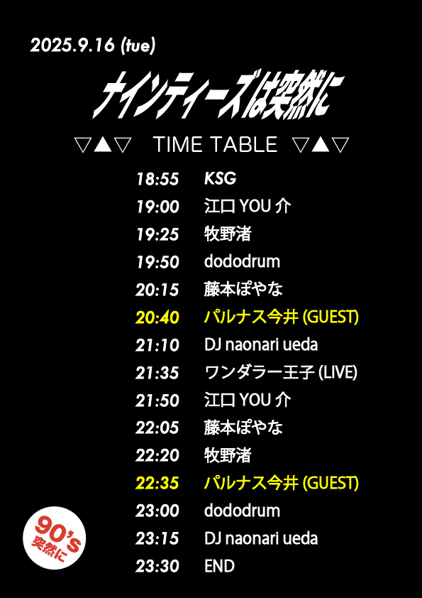 90年代をテーマの選曲で毎度ながらダンスフロアは踊り狂う状況で楽しいこと間違いなし!!