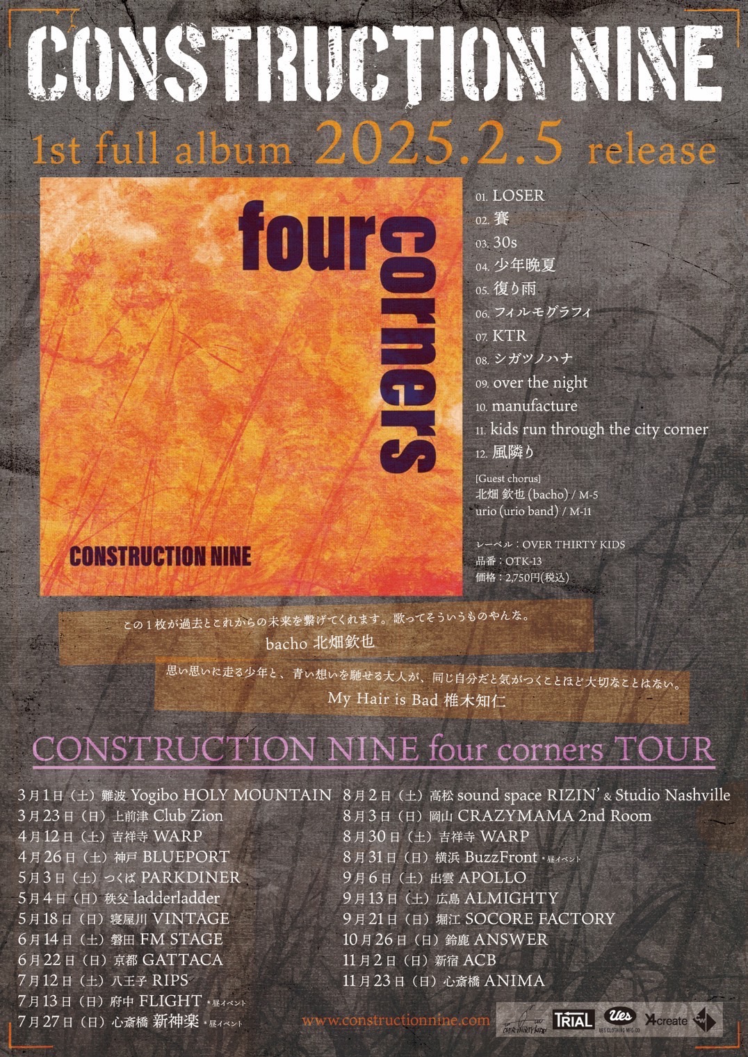 CONSTRUCTION NINEリリースツアー大阪途中編の詳細アップ!!