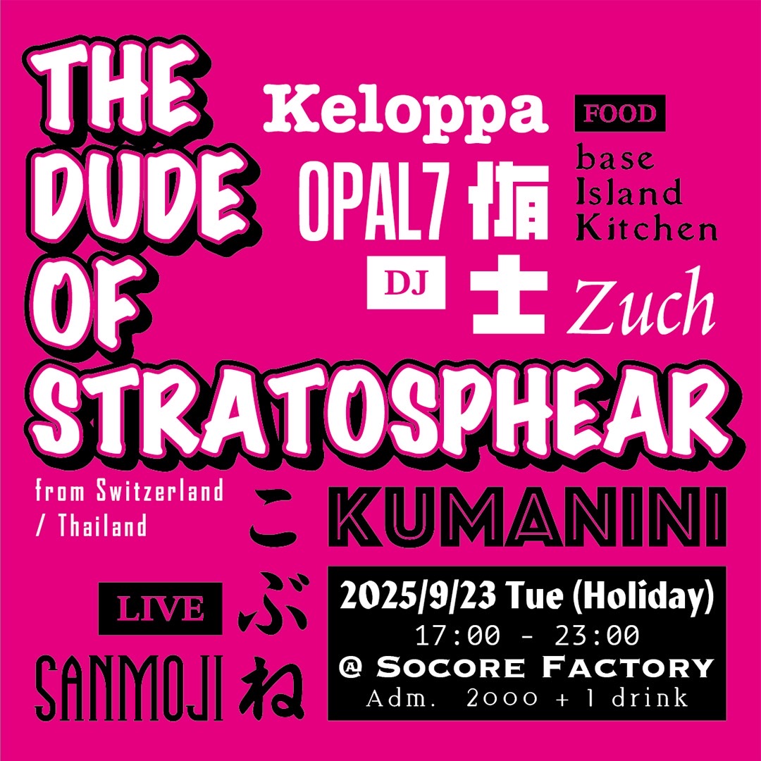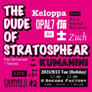 The Dude of Stratosphearが帰ってくる!9月23日 火曜・祝日、大阪 南堀江 Socore Factory!