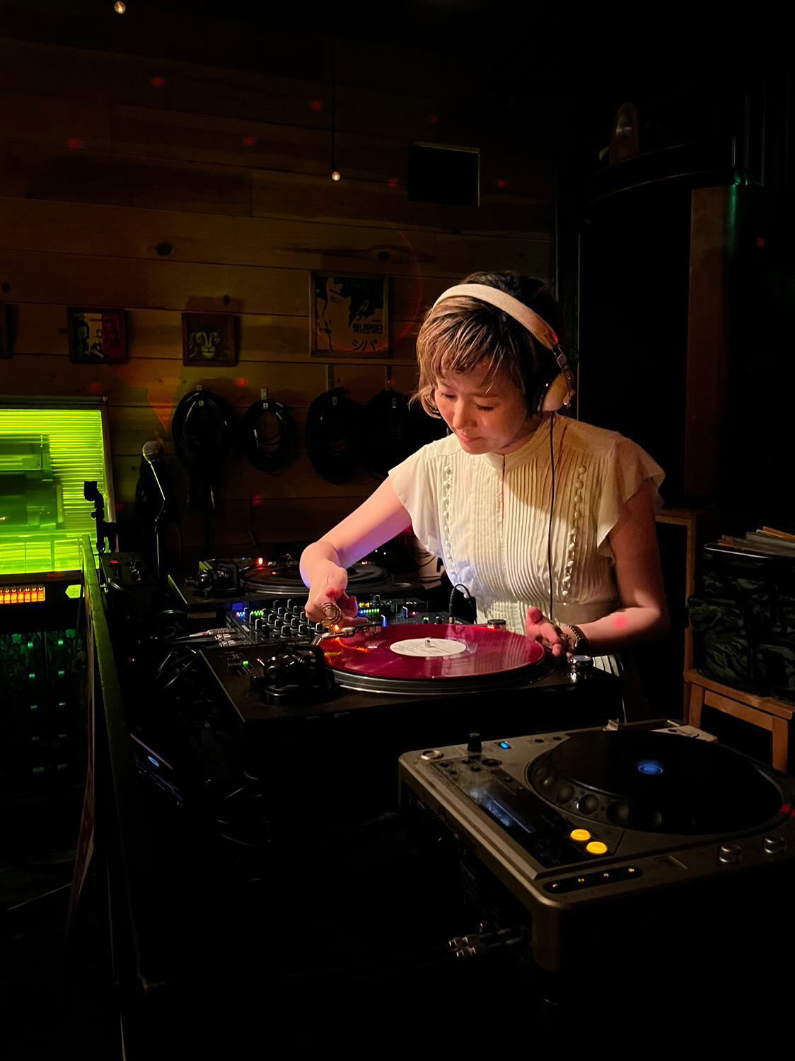 哀愁漂うラテンミュージックを中心に、クンビア・スカ・ジャズ・ディスコ・シティポップ・和モノ・歌謡曲など、多種多様なセレクションで人気の女性DJ。2005年からDJ活動を開始し、母になった現在もALLMIXでフロアを盛り上げる。