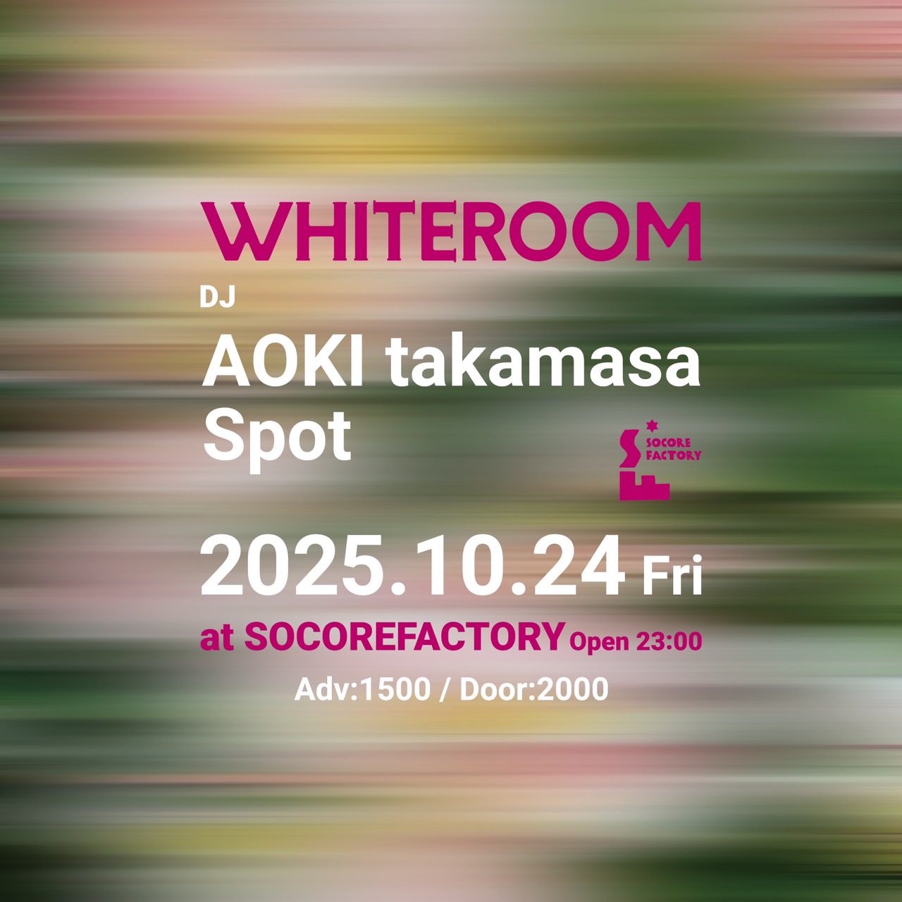 本家本元SOCORE FACTORYのTECHNOパーティーの真髄”WHITEROOM”が今回AOKI takamasaとSpotの2マン企画で開催決定!!