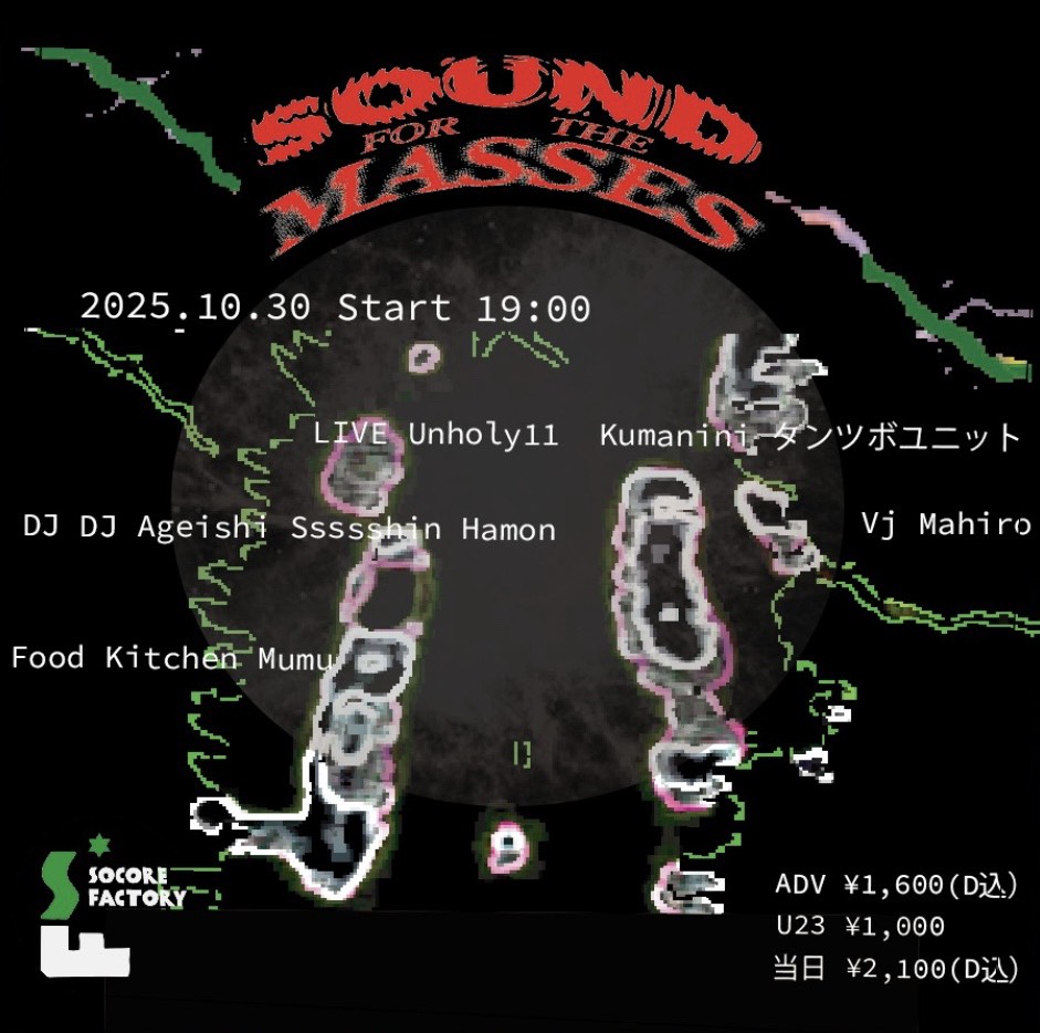 大阪南堀江のSocore Factoryにて地域人々が構えずに交流がとれる場として毎月開催しているダンスパーティー”Sound For The Masses”