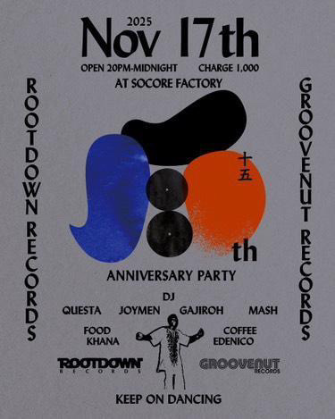 ROOTDOWN RECORDS & GROOVENUT RECORDSとの共同での15周年記念イベント開催!!