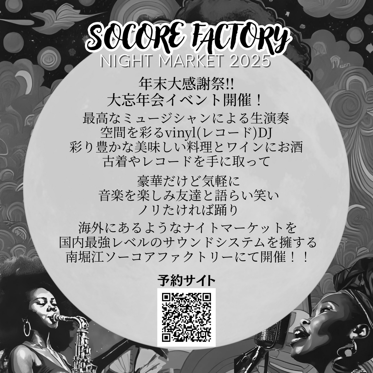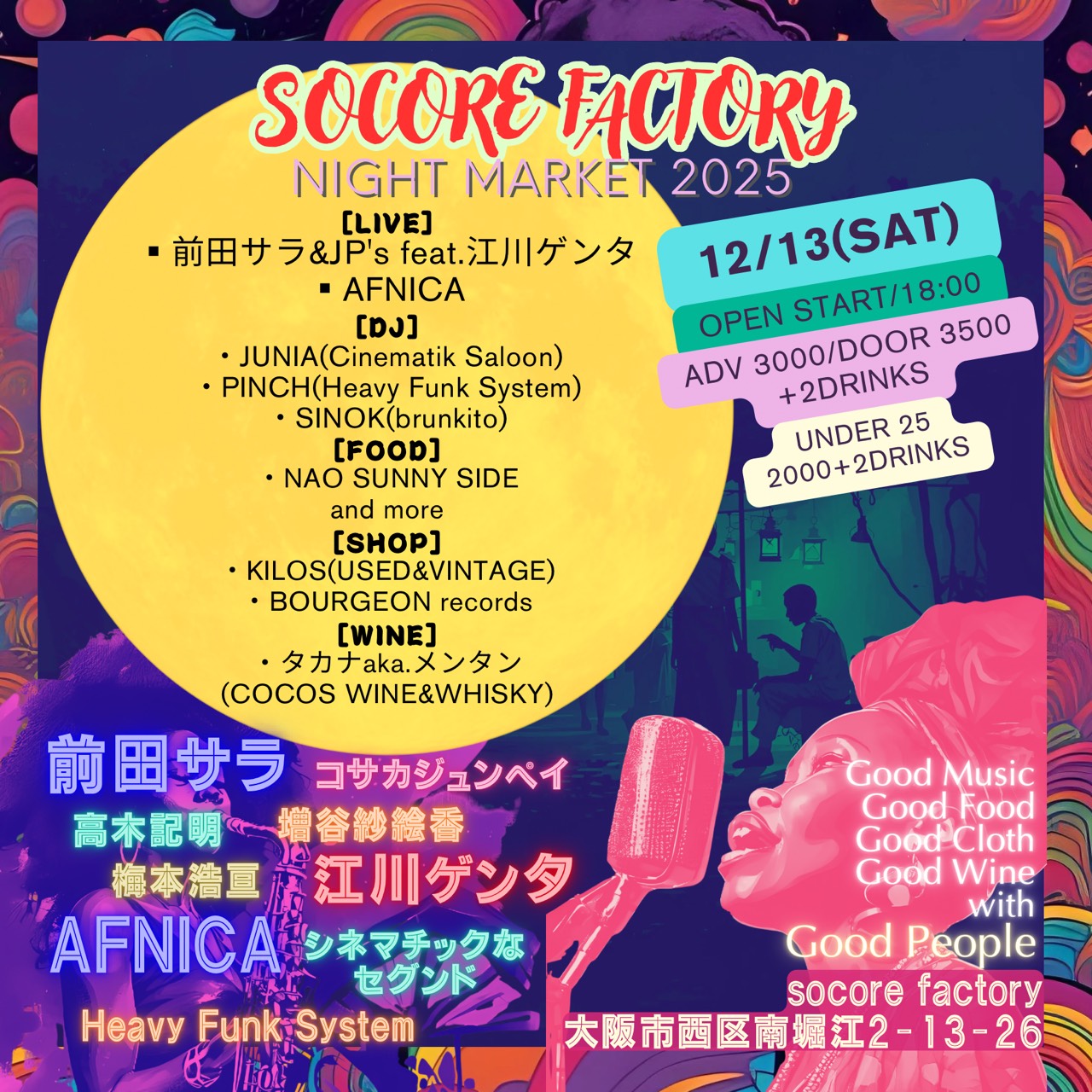 海外にあるようなナイトマーケットを国内最強レベルのサウンドシステムを擁する南堀江ソーコアファクトリーにて開催!!