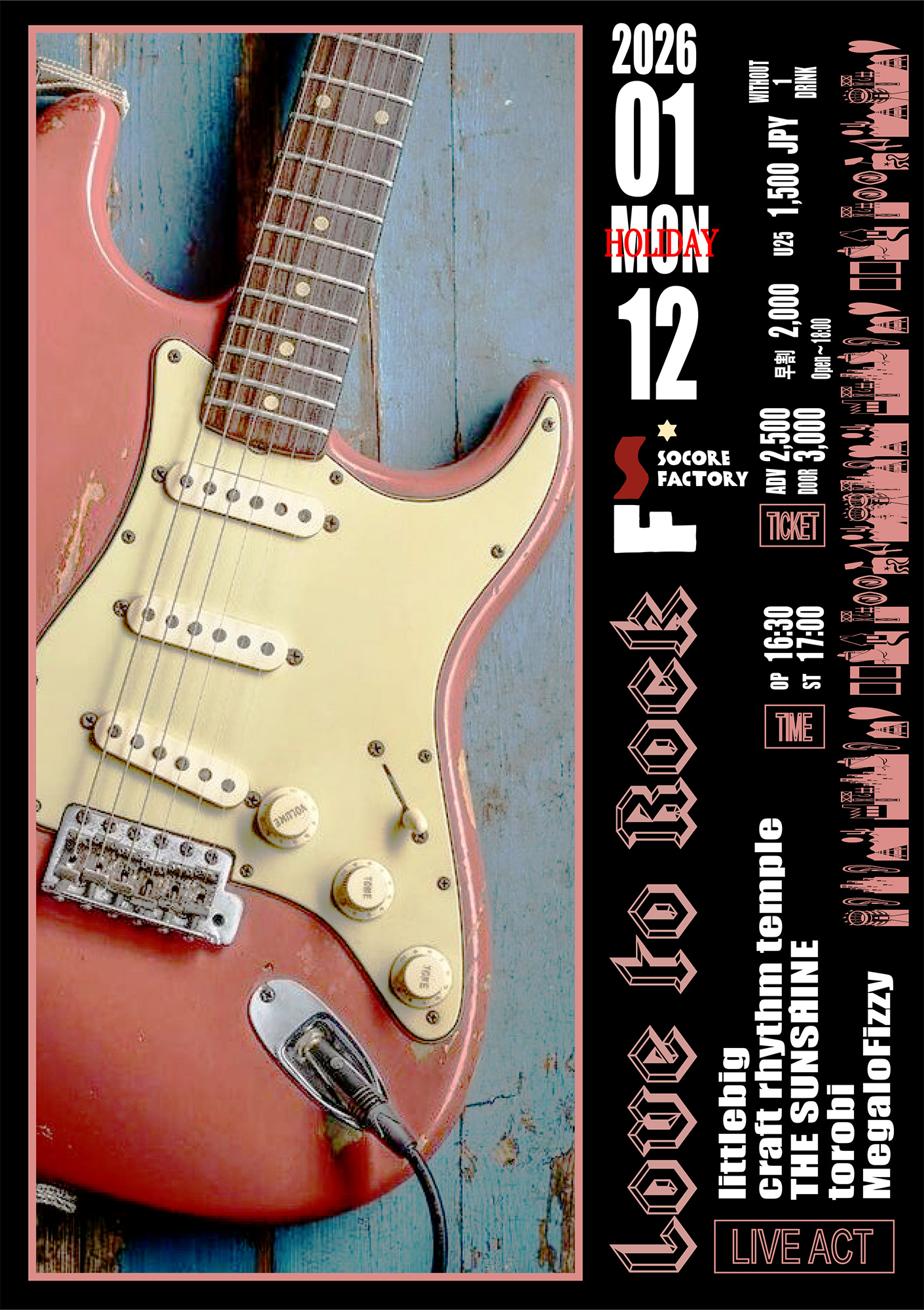 Open:16:30 / Start:17:00 / Adv:¥2,500 (D別) / Door:¥3,000 (D別)