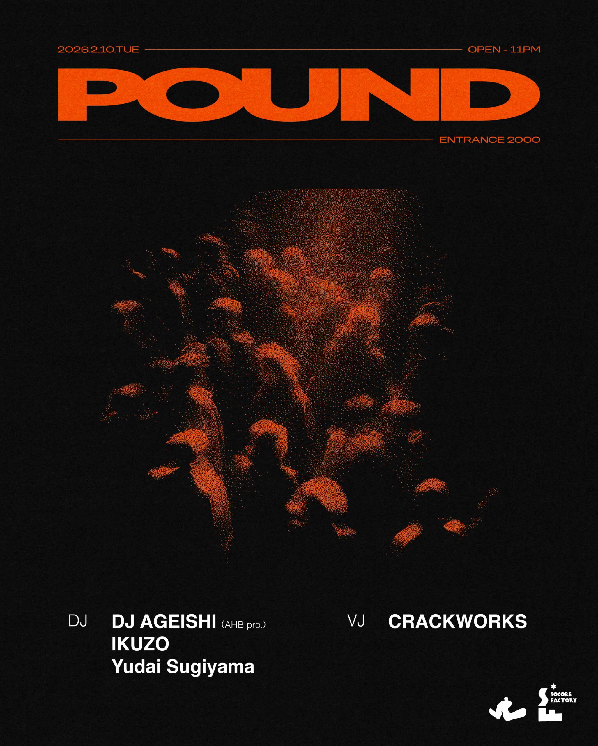 2026年2月10日(火)、南堀江 SOCORE FACTORY にて Yudai Sugiyama、IKUZO が主催する 第5回目の「Pound」を開催。