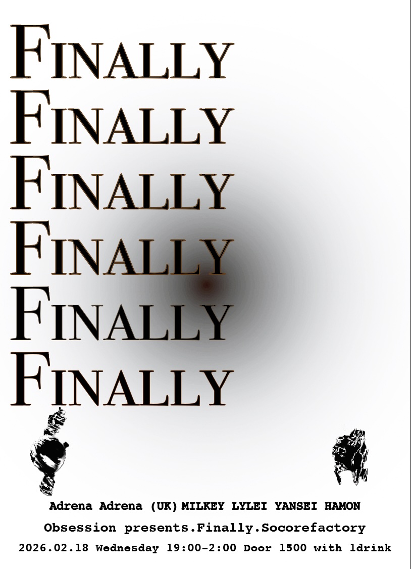 2025年に大阪で設立されたレーベル”Obsession”のダンスパーティー”FINALLY”がUKよりAdrena Adrenaを招待して開催‼2026年新たなダンスミュージックとエレクトロニックミュージック。
