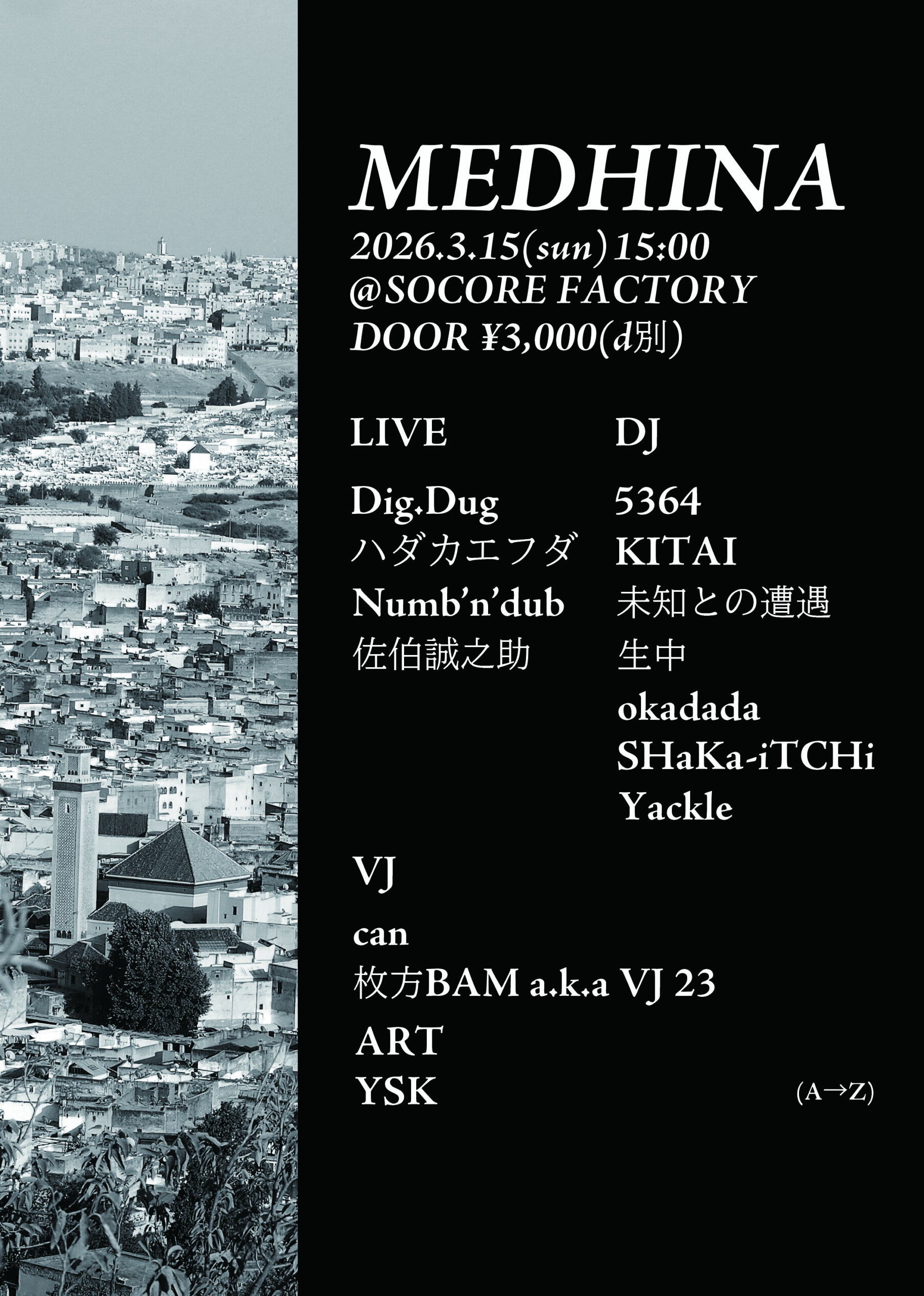Open:15:00 / Start:15:00 / Adv:¥3,000 (D別) / Door:¥3,000 (D別)